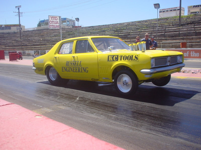 | 1969 HT Holden Kingswood Engine: 454 Injected big block Chev, bored out 60’ to 486c.i, TRW Pistons 12.9:1 compression, Dart Merlin cast iron heads, Hilborn Mechanical Fuel Injection, Steel Crank, Manley Steel Rods 6.135”, Crane F276 Solid Cam, Rollmaster Double Row Timing chain, Crane Roller Rockers, Manley Titanium Tip Push Rods, MSD 72AL Ignition box – MSD Billet Dizzy & Propower Coil, High Energy Sump – System 1 Oil Filter, Deadenbear electric water pump, ARP Headstud & Mainstud Kit, Extensive custom designed and engineered ELB’S Racing aluminum work; radiator, fuel cell, breather tank, Custom Porcelain Coated Exhaust – By Exhaust Technology. Transmission: Powerglide Transmission, Coan torque converter, B&M Aluminum Sump - B&M Prostick Shifter - B&M Super Cooler, Vasco input shaft – Chrome Moly Hub – 8 Plate Clutch Pack, 1.76 Planetary Gear Set, TCI Trans Sheild, A1 Transbreak. Diff: Shortened 9" housing, 9” Solid Diff Centre 4.3 Pro Gears, STRANGE 35 Spline Billet axles. STRANGE Nodular Iron Case, Custom 3” Tail shaft with STRANGE yokes and uni’s, Custom Tail shaft Loop, Ladder Bar rear end. Brakes: Front: ELB’S Racing custom HQ front disc & calipers, TCI Line Locker. Rear: ELB'S Racing custom rear calipers & rotors. Stroud Parachute. Wheels / Tyres: Front: Centreline Auto Drag Front runner 15X3 ½, Moroso Front runners. Rear: Centreline Auto drag rear 15X14, Hoosier race slicks 15X32X14. Body: ELB’S Racing Custom Billet Aluminum work, Fiberglass Front Clip, Doors and Bootlid, ¾ Chassis with ANDRA approved roll cage, Polycarb Windows, Autometer Gauges, Streamline Flowed Wing, Extensive Wheel Tub’s Best ET / MPH : 9.80 @ 140.00 mph. 1320ft (¼ mile) 8.19 @ 124.89 mph. 1000ft |